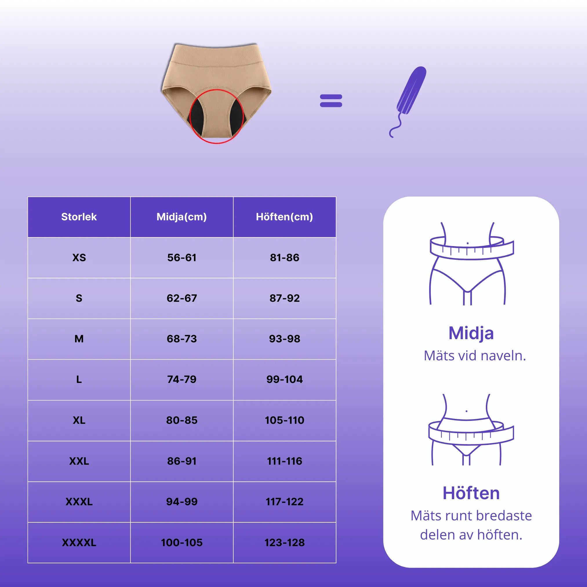 You can try the panties at home in peace and quiet. If the size doesn't feel right, we will send a new pair in the size you need completely free of charge. You get to keep the first pair.