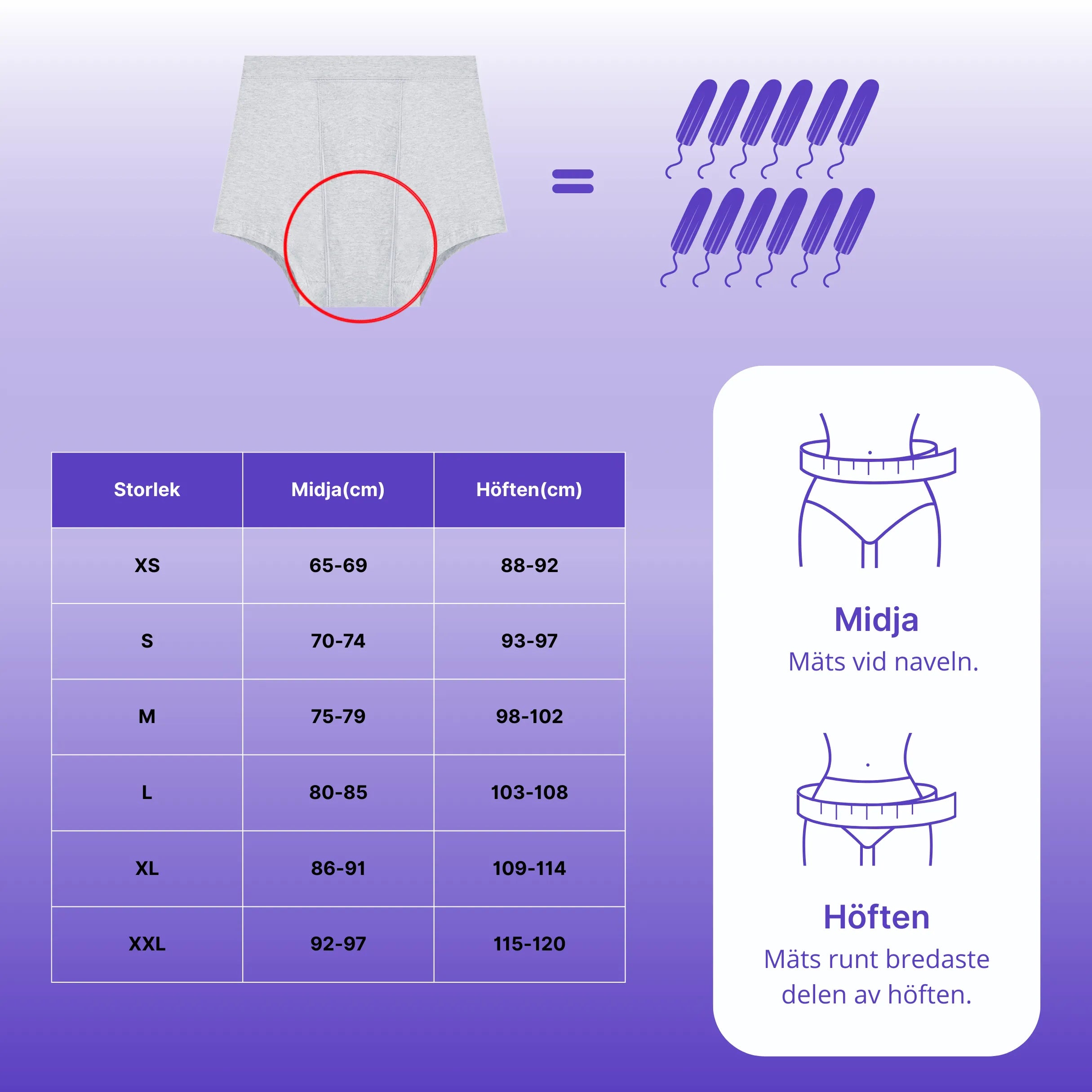 You can try the panties at home in peace and quiet. If the size doesn't feel right, we will send a new pair in the size you need completely free of charge. You get to keep the first pair.