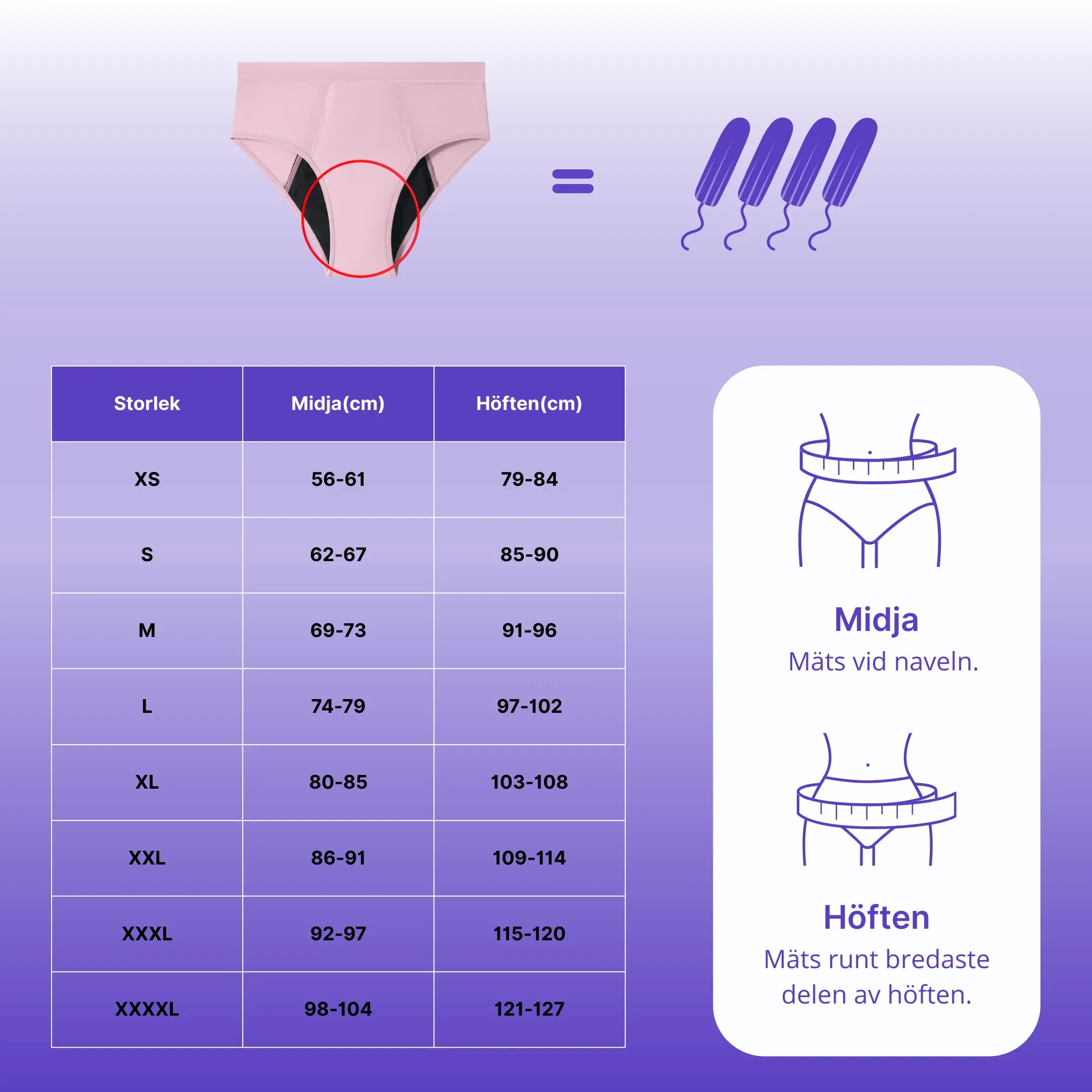 You can try the panties at home in peace and quiet. If the size doesn't feel right, we will send a new pair in the size you need completely free of charge. You get to keep the first pair.